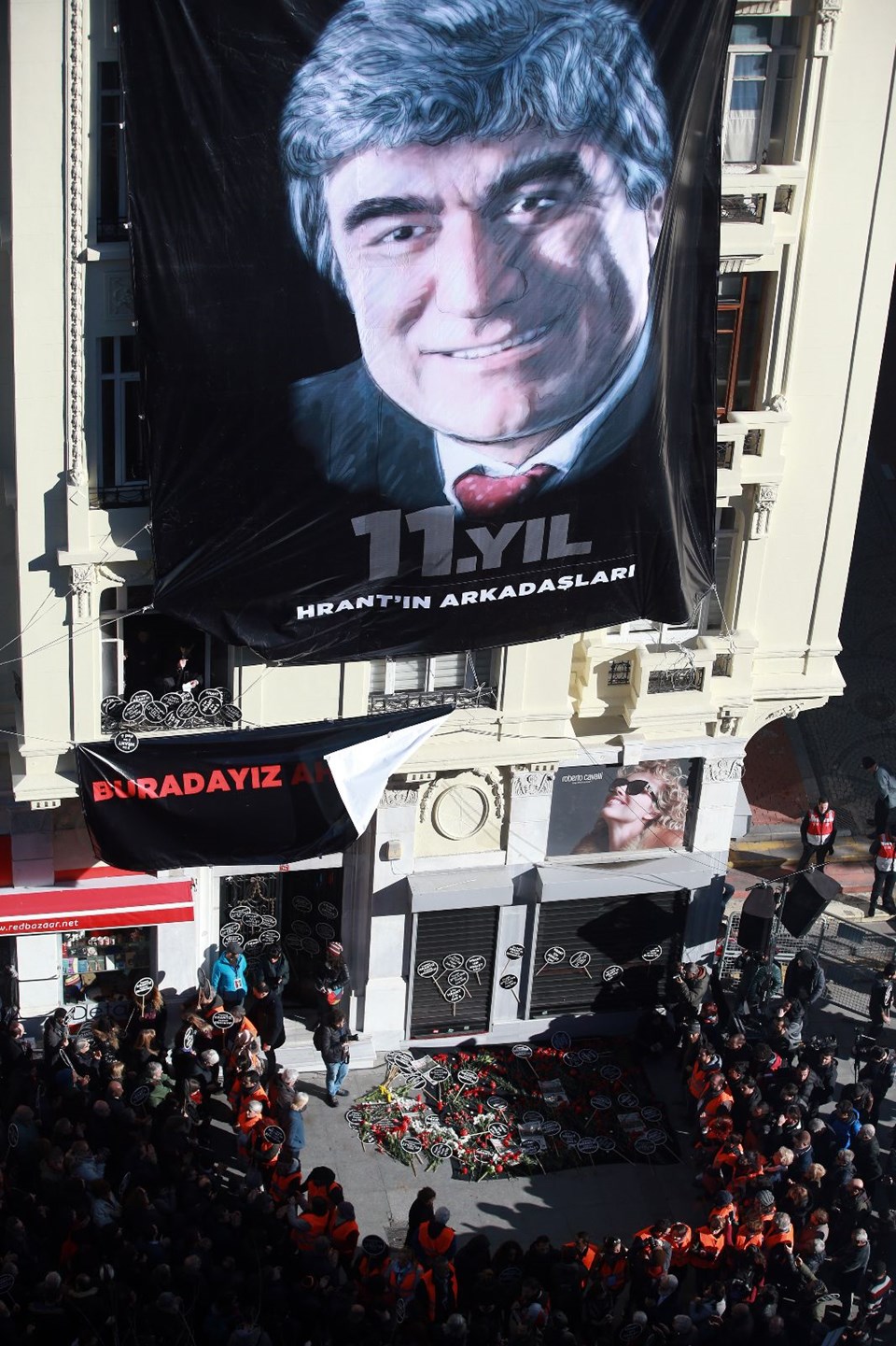 Hrant’ın arkadaşlarından Bülent Aydın da bir konuşma gerçekleştirdi. Konuşmasında “Güneşli ama soğuk bir kış günündeyiz. Yan yana olmanın sıcaklığıyla buradayız. Bugün burada bizimle olması gereken ama cezaevine konmuş arkadaşlarımız var. Gazeteci arkadaşlarımızı, milletvekillerini ve seçilmiş siyasetçilerimizi aramızda sayıyoruz” diyerek tutuklu gazetecileri ve siyasetçileri selamladı. Kitle sık sık “Biz Bitti Demeden Bu Dava Bitmez”, “Katilleri Koruyan Cinayete Ortaktır!” sloganlarıyla Dink’in gerçek katillerinin gereken cezayı almamasına duydukları öfkeyi dile getirdi. Anma etkinliği Ermenice, Türkçe, Kürtçe ezgilerle, sloganlarla son buldu.